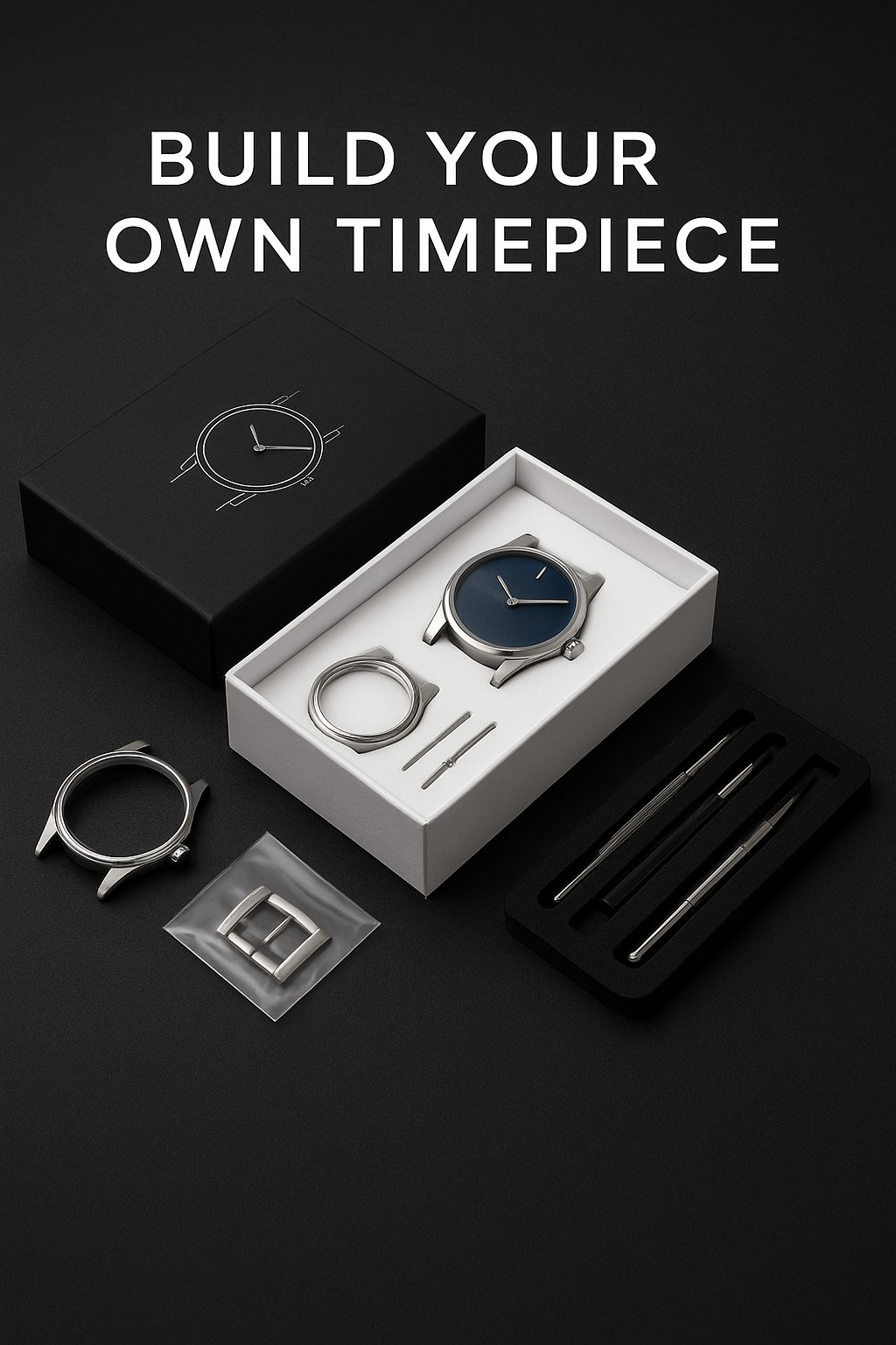 Experience the art of watchmaking. Each kit includes premium components and precision tools, allowing you to build a timeless piece — by your own hands.